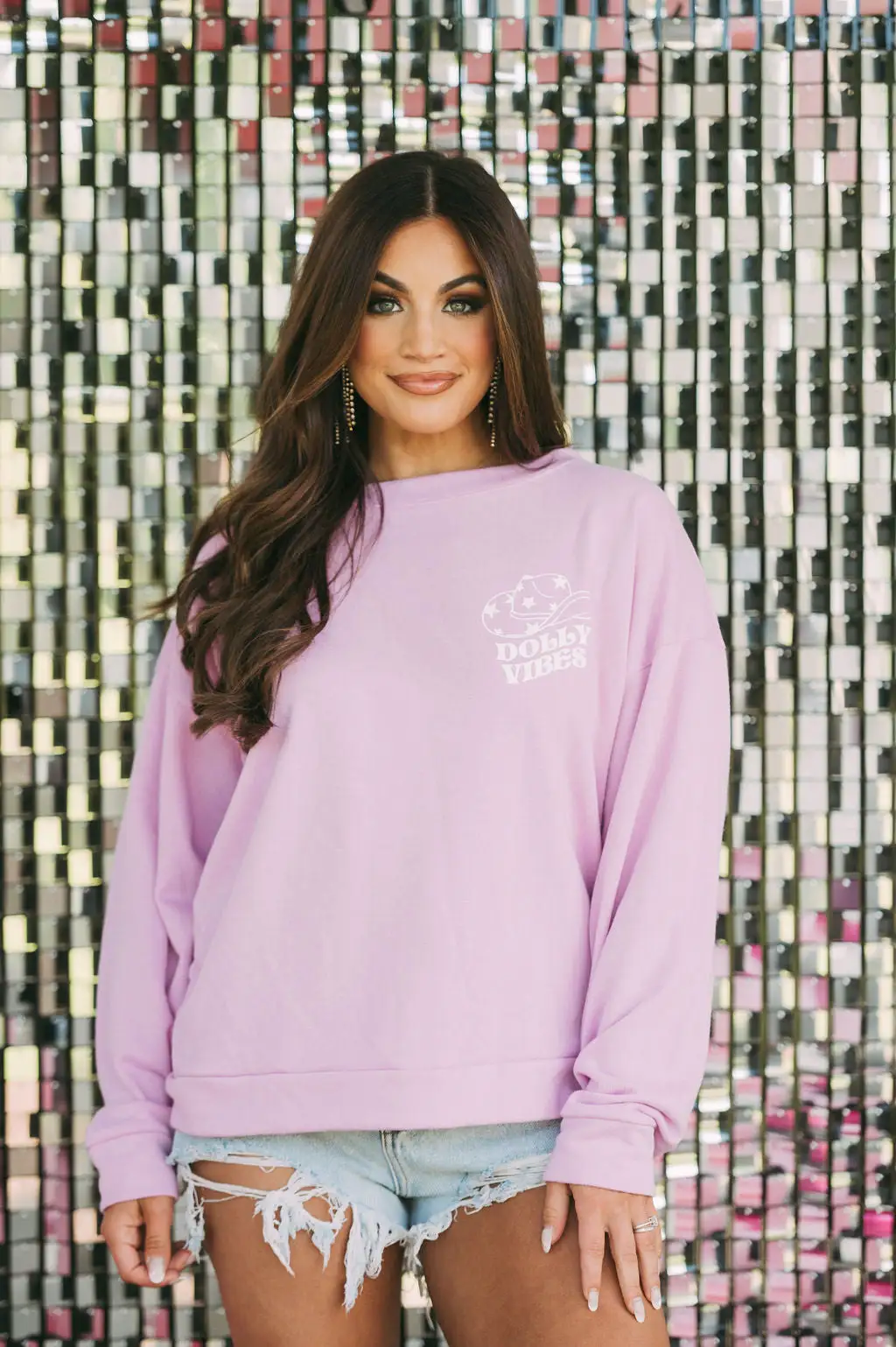 - Stay cozy in style in this Dolly Vibes Pullover. Crafted in a soft pink hue, with a rounded neckline and slightly loose fit, you’ll feel comfortable and look fabulous.