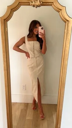 - Model is 5’4″ with a 32″ bust and a 25″ waist wearing a size small.