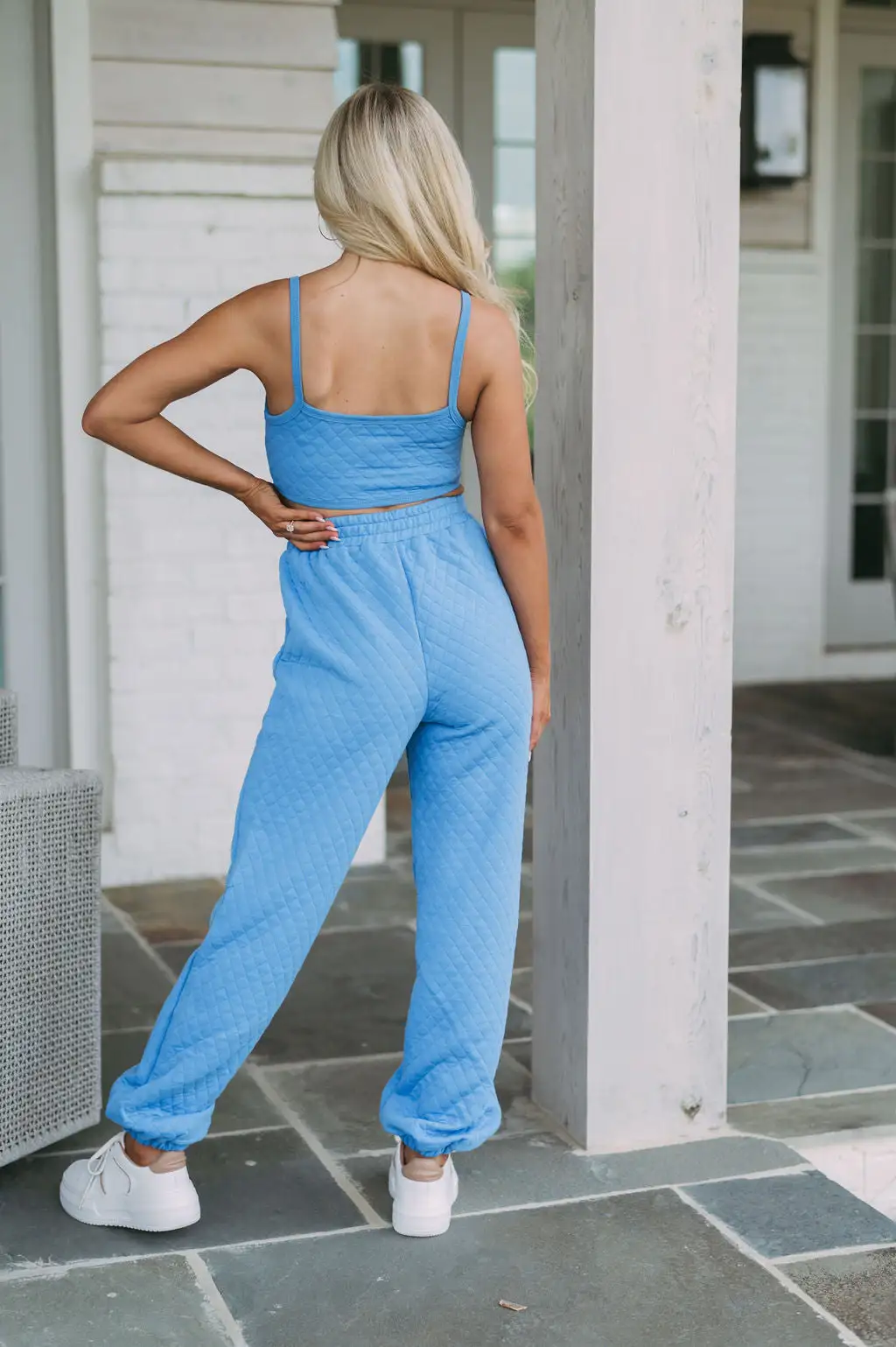 This Gavin Quilted Lounge Set-Blue features a cropped tank top paired with high-waisted joggers with an elastic waistband and pocket accents. The quilted material ensures comfort and durability, while the modern design and stylish accents will elevate your look!