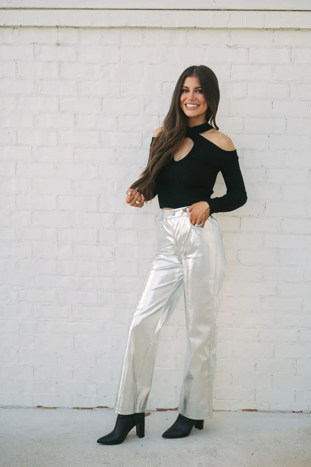 Make a statement with our Houston Metallic Pants! These silver metallic faux leather pants feature a high-waisted fit and straight legs, creating a sleek and timeless silhouette that’ll keep you looking and feeling confident. Stand out and shine, no matter the occasion!