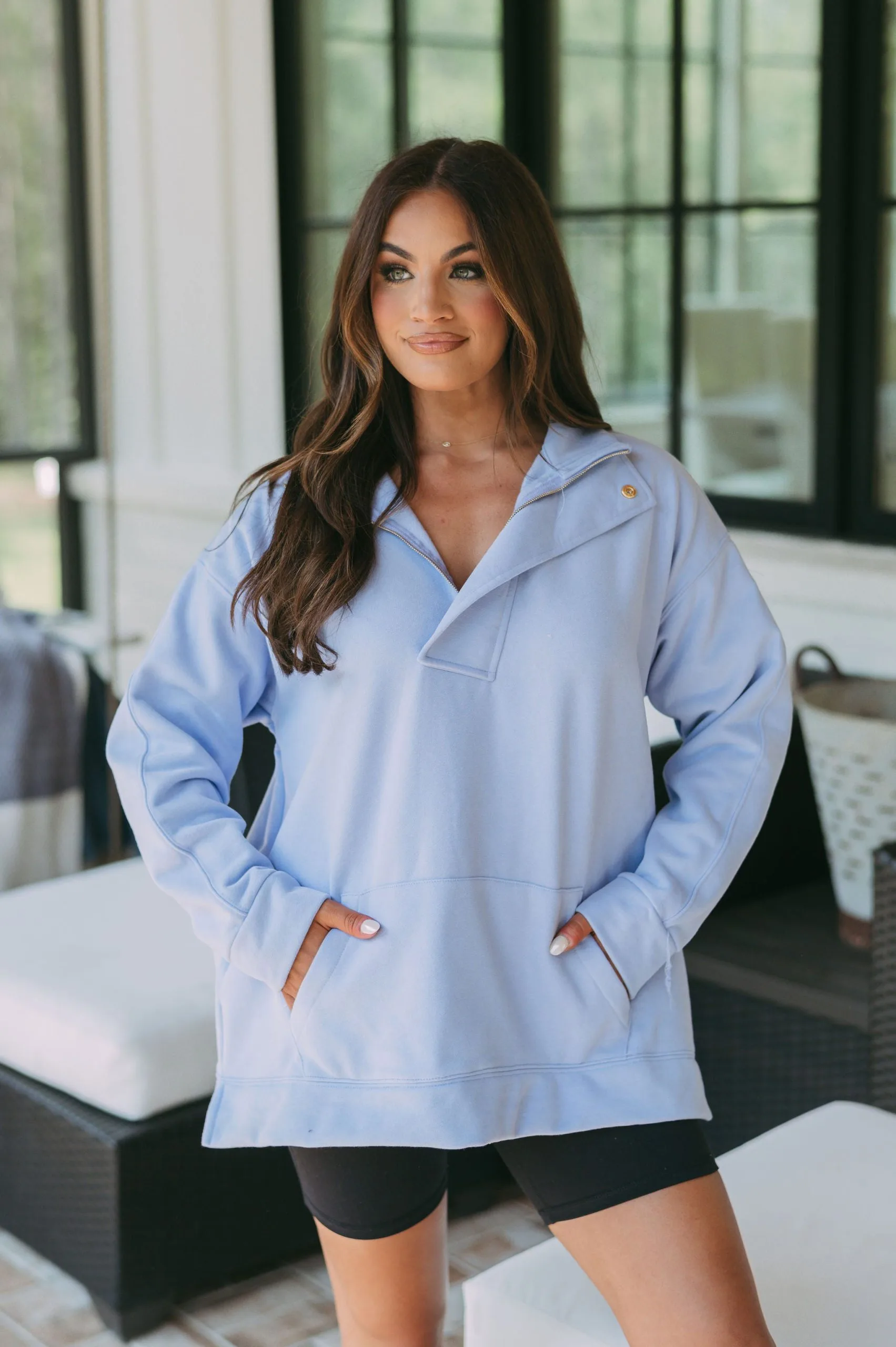- Take your look to the next level with the Lennon Oversized Pullover. Featuring a cotton-blend fabric in a bold blue color and oversized fit, this pullover is as stylish as it is comfortable. A quarter zip and front pocket accent add a touch of timeless appeal.
