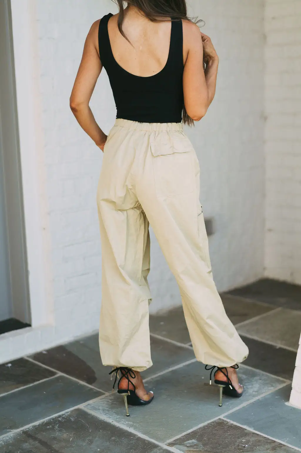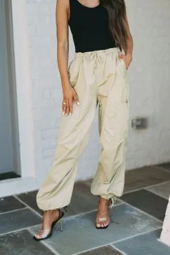 Elevate your style with On the Go Cargo Pants-Light Olive. Crafted with light olive fabric, these pants are equipped with a high drawstring waistline and adjustable bottom hem for a custom fit. Step out confidently – stay on the go!