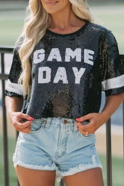 Sequin Game Day Top-Black