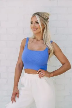 Ribbed Square Neck Crop Top- Blue Iris