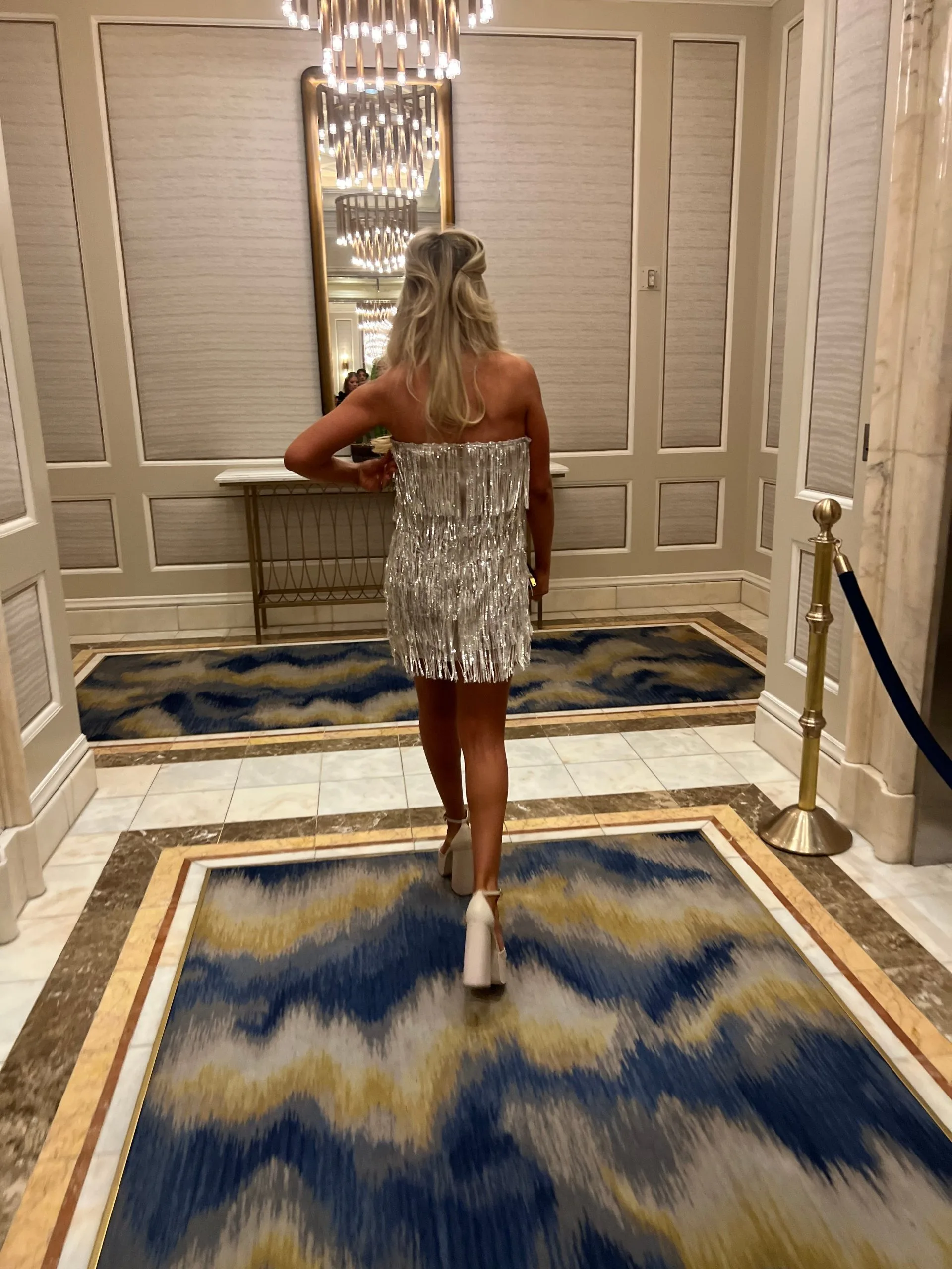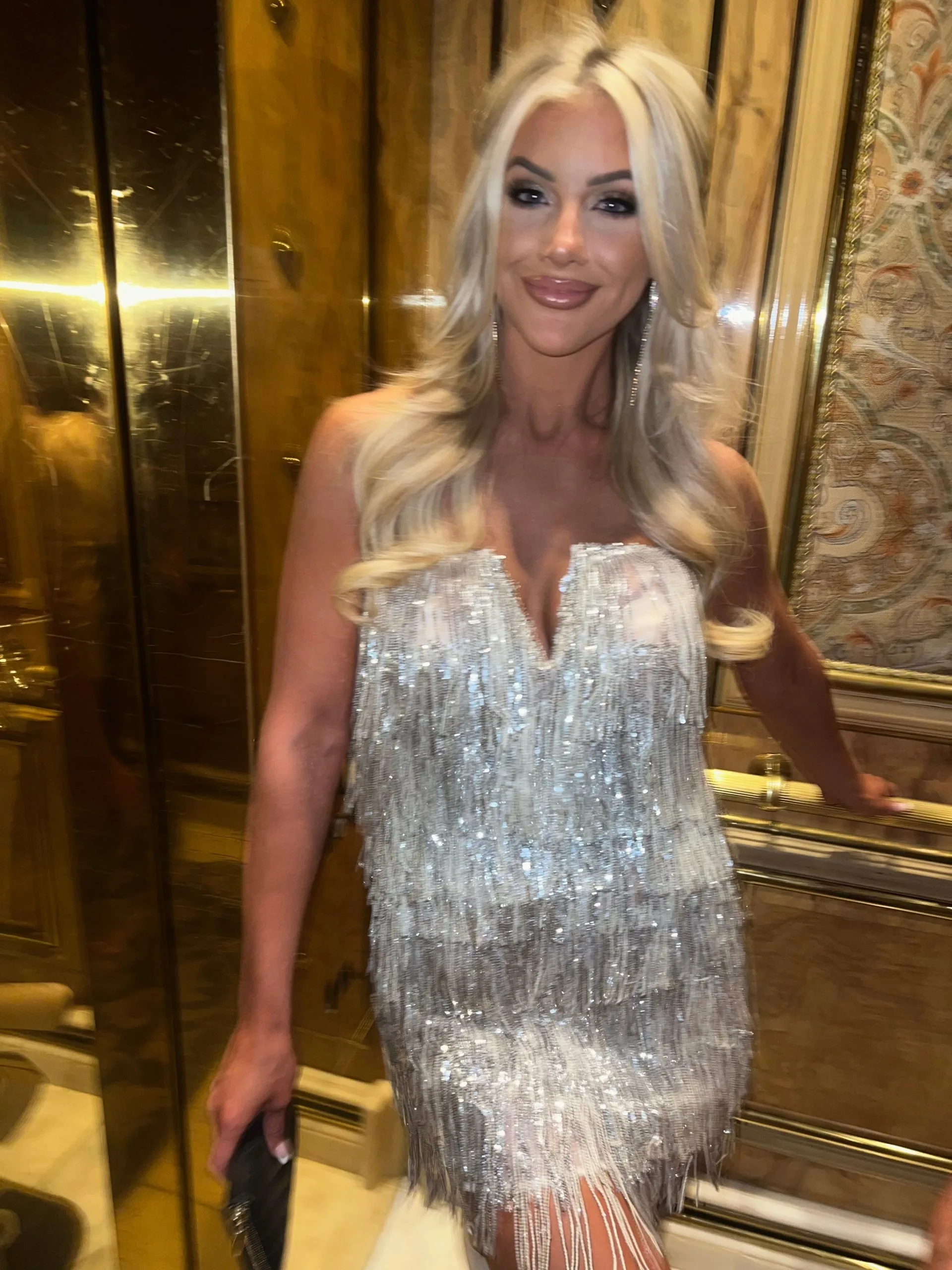 Be the center of attention in the Sequin Fringe Mini dress. Made from delicate sequins and shimmering fringe, this daring mini dress features a zipper closure in the back, a plunging neckline, and sheer fabric for a glam look. Make a statement at any event.