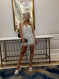 Be the first to review “Statement Sequin Mini Dress-Silver” Cancel reply