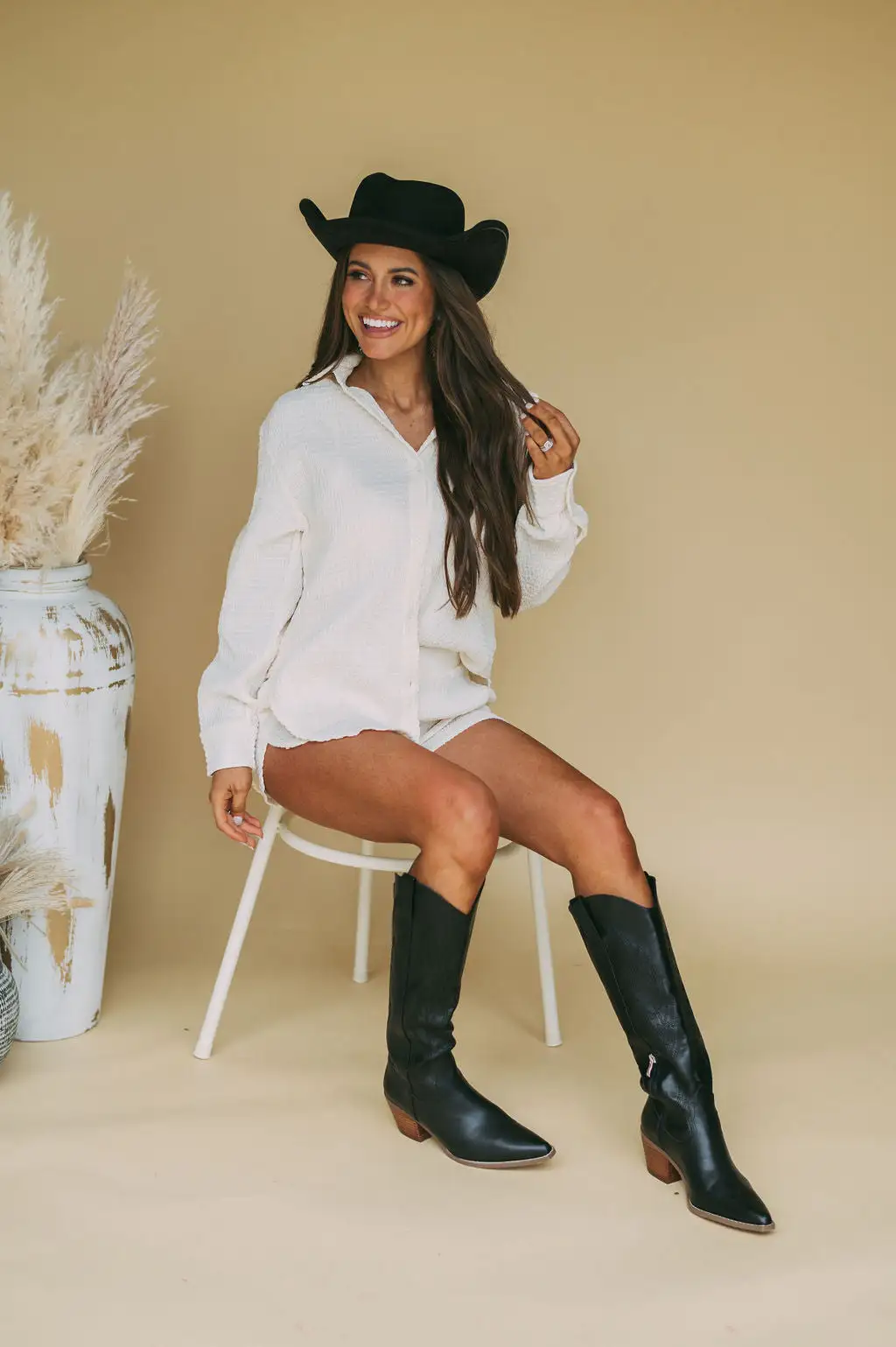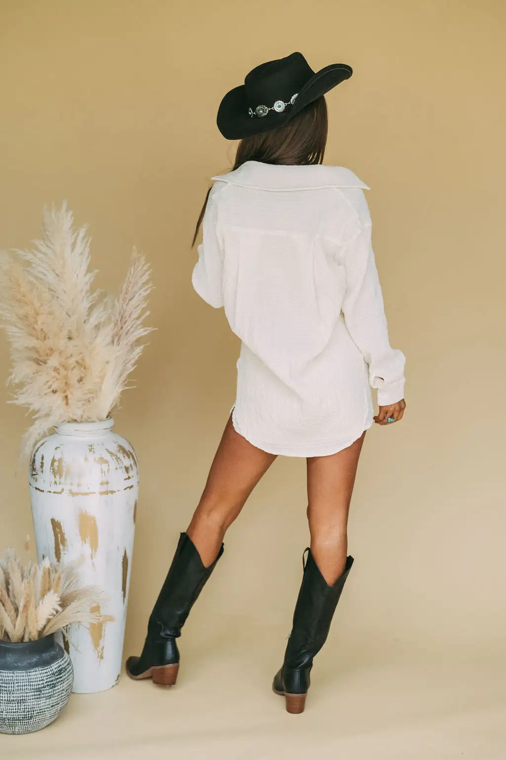 - These cream shorts includes a scrunch-like texture, pockets, and an elastic waistline!