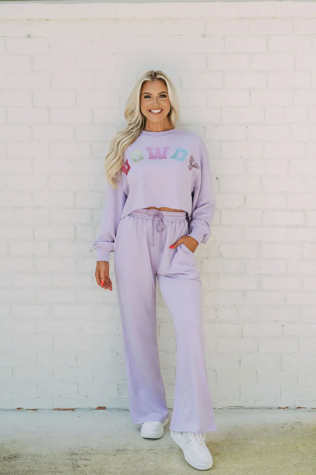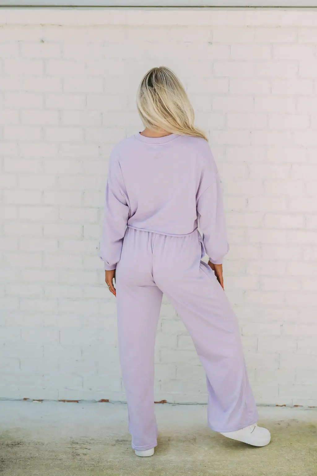 Unwind in style with these Wide Leg Drawstring Pants-Lavender. Crafted in lavender, these lounge pants feature a high waisted drawstring tie waistband for an adjustable and comfortable fit and pockets for practical storage. The wide legs complete the classic look. Relax in complete comfort!
